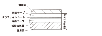 | 材質 | 人造黒鉛 | 特長 | シリコーンフリー, 高熱伝導, 放熱材料, 薄型, 片面粘着 |
